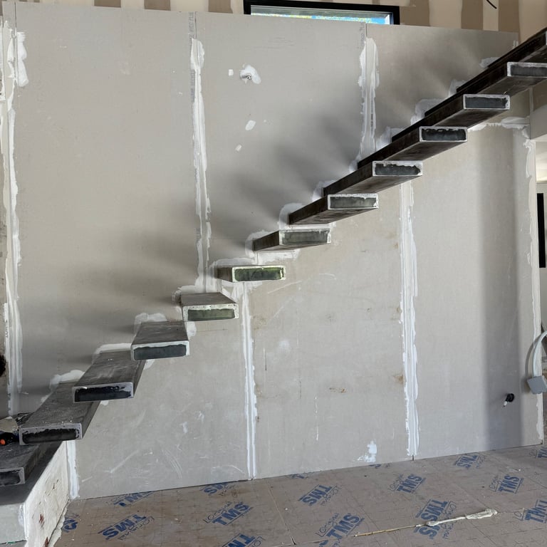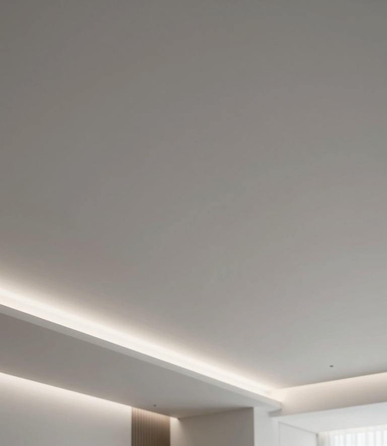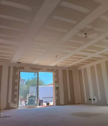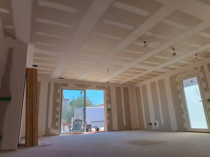 De l'enduit de finition à la peinture intérieure, nous assurons des surfaces parfaites. Découvrez aussi nos créations sur mesure : niches murales, meubles TV en placo et faux plafonds avec éclairage LED.
